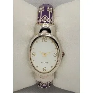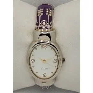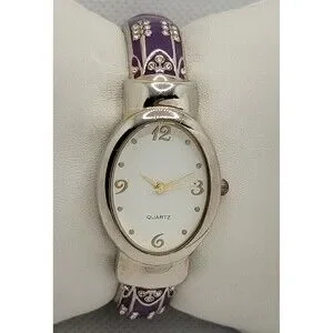 Women's Classic Oval Silver Tone White Dial Purple Cuff Bracelet Watch 01. Condition is pre-owned. Working good. New battery installed. Some signs of previous wear. For more information, look at the pictures. Shipped with USPS First Class. We will provide you with a tracking number for your shopping convenience.