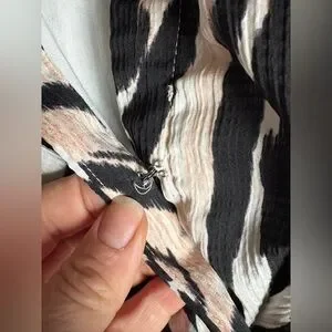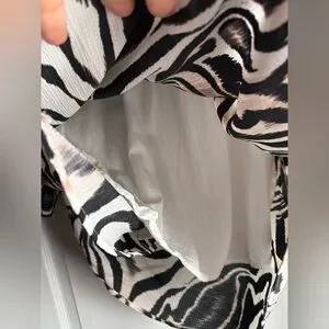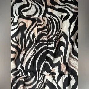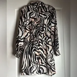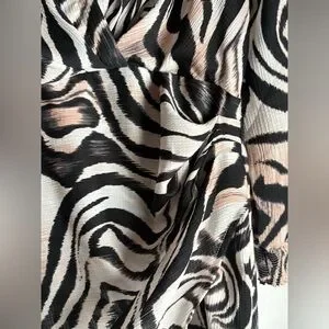 Anthropologie Faux Wrap Zebra Print Long Sleeve Mini Dress sz 12P. Chic office or event dress. Fully lined, hiddeb side zip. Looks great styled with a wide belt. Cream, Black & Blush. Questions please ask! Non-smoking dog home.