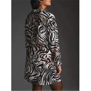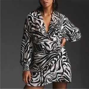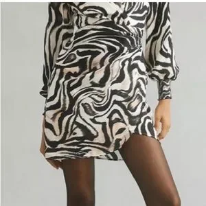 Anthropologie Faux Wrap Zebra Print Long Sleeve Mini Dress sz 12P