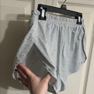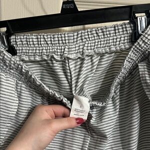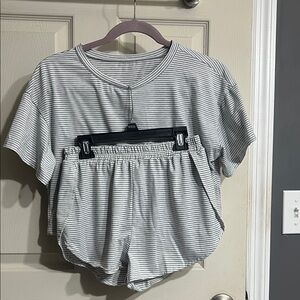 Comfortable striped loungewear set in gray and white. Perfect for relaxing at home. Worn 3-4 times! Large slit on each side of the shorts.