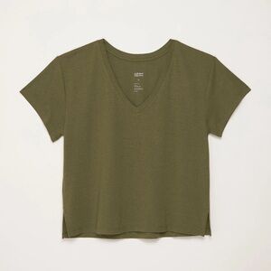 Girlfriend Collective Cupro V-Neck Short Sleeve Tee in Fern in excellent preowned condition. Very minor signs of wear. Size Large, measurements are shown in photos.