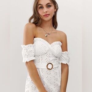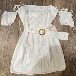 Missguided Broderie Mock horn White Off Shoulder Mini Dress NWT