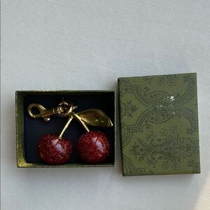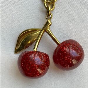 Add a playful touch to your accessories with this charming gold and red cherry bag charm or keychain.