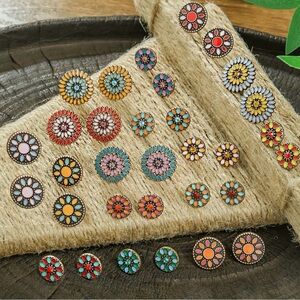 Elegant floral earrings featuring a stunning combination of Boho and vintage feel. Perfect for adding a pop of color to any outfit.