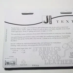Intense, semi-opaque color for natural and synthetic fibers, leather, wood and paper. Great for use with stencils and glazing.