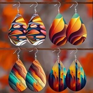 ⭐️ 5 for $25 Bohemian Wood Abstract Teardrop Hoop Fashion Earrings