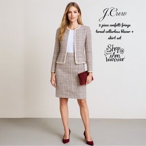 J.Crew NWT confetti fringe tweed collarless blazer + skirt set *shop@iamwarrior