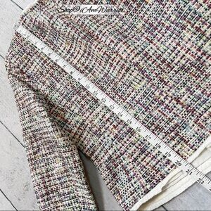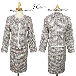 J.Crew NWT {factory} multi color confetti cotton blend blazer with fringe trim & collarless style is perfect with matching pencil skirt. Can be worn as separates too! Listing is for 2 piece set only! Both size 6 & NWT. Blazer, retailed at $158, Pencil skirt $90 for combined retail of $248. More photos of skirt to come.