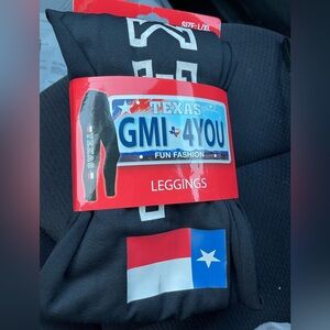 Stylish black leggings by Mi. Features bold Texas-themed design. Perfect for casual wear.