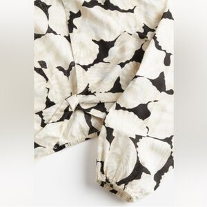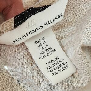 H&M Black & Cream Seashell Linen Blend Long Sleeve Cropped Top Women's XS EUC