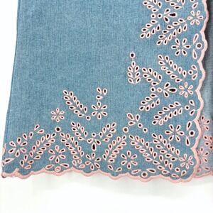 NWT Driftwood Serena Denim Maxi Skirt Sz 32 Blue Pink Eyelet Embroidered Slit
