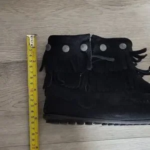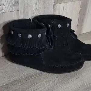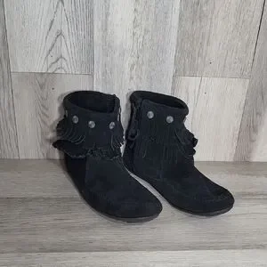 Minnetonka Womens 11 Double Fringe Suede Zip Boots Moccasin Style Southwestern