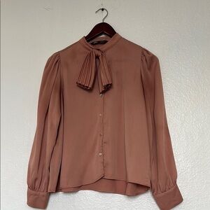 Zara Pink Blouse with Puff Sleeves and Tie Front