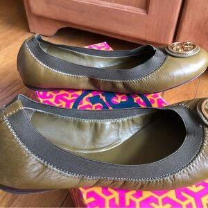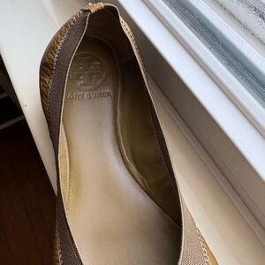 These shoes are in very good condition & have very minor signs of ware as shown in the photos. They have a cushioned insole and elastic around the top making them very comfortable. They come with the original box and Tory Burch tissue paper. These shoes have been kept in a smoke free home. I am a 5 star seller on Poshmark.