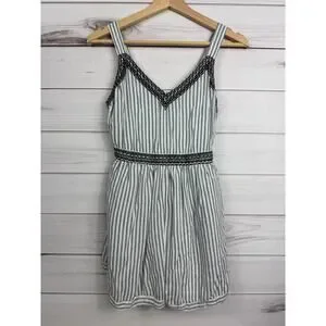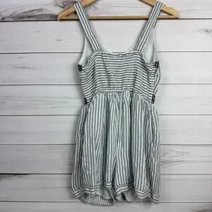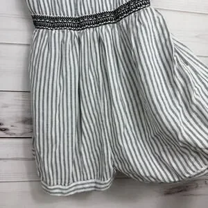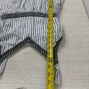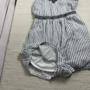 Japna Womens Romper S Blue White Striped Embroidered Sleeveless V-Neck