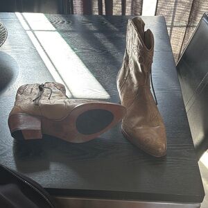 Step out in style with these Free People ankle boots, perfect for the fashion-forward woman. With a low block heel style and ankle boot shaft height, these boots are both comfortable and trendy. Whether you pair them with jeans or a skirt, these boots are sure to turn heads. In excellent condition.