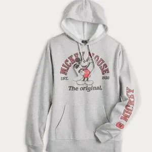 Men’s Disney Mickey Mouse hoodie sweatshirt in a versatile heather gray. Features a bold Mickey graphic on the front with “The Original” detail and Mickey text down the sleeve. Soft fleece interior, adjustable drawstring hood, and front kangaroo pocket make this perfect for casual wear, lounging, or Disney fans.