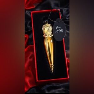 This authentic Christian Louboutin Silky Satin Lip Colour comes in the instantly recognizable gold architectural bullet with spiked band detail and signature design. A true collector’s piece and statement accessory, as stunning on your vanity as it is on your lips.