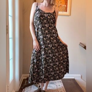 Charming black dress with vibrant floral design. Perfect for any occasion.