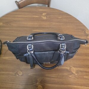 Sophisticated and stylish navy leather handbag perfect for any occasion. Features a sleek design with durable handles and a detachable strap for versatile wear.