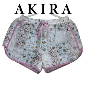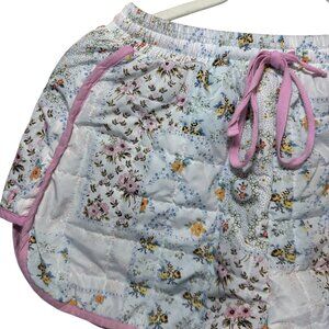 AKIRA Mixed Floral Patchwork Puffer Shorts – Quilted, High Rise, Small