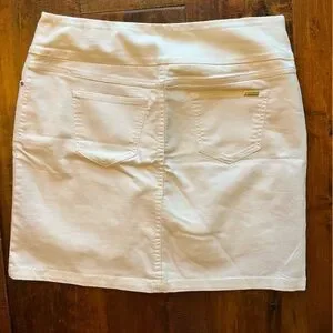 Stylish white denim skirt with built-in short and has pockets front and back. Stretchy and great for casual wear! never worn!