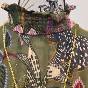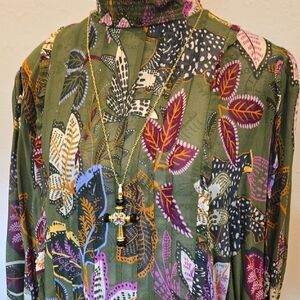 FARM Rio Vibrant Wild Jungle Sheer Dramatic Sleeve Pintuck Dress 100% Viscose XL