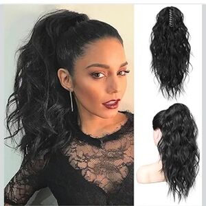 Enhance your look with this elegant black wavy hair extension. Perfect for adding volume and style effortlessly.