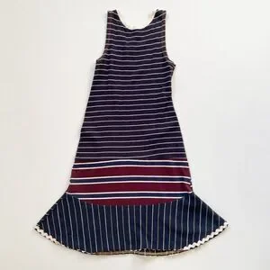CourtneyCourtney Girls Dress 7/8 Sleeveless Cotton Twirly Skirt Navy Blue Handmade with rick rack accent.