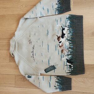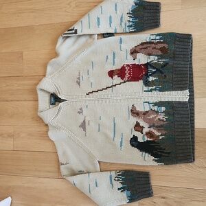 Vintage 90s Lauren Ralph Lauren Hand Knit Cowichan Scenic Landscape Dog Sweater