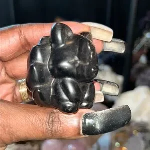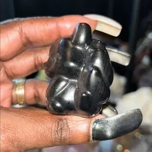 Adorable and Legendary 9-tail Fox in Silver Sheen Obsidian carving
