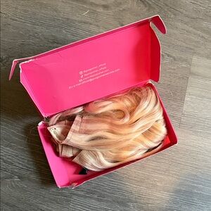 Add flair with GOGO extensions. Blonde with pink highlights. Easy to style and wear.