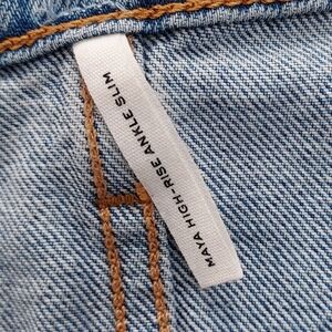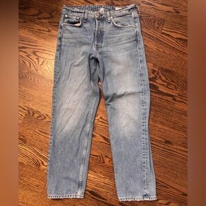 Stylish high rise jeans. Light blue wash. Comfortable fit. Perfect for casual wear. Size 29.