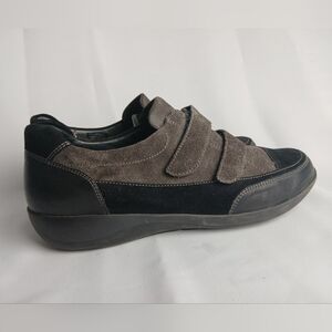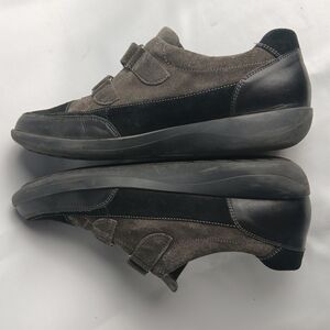 ARA Women Gray And Black Suede Flat Shoes Velcro Closure Size 11.5