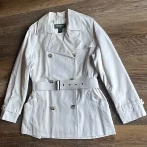 NWOT VTG Eddie Bauer Double Breasted Belted Trench Coat MIDI White Women’s L P