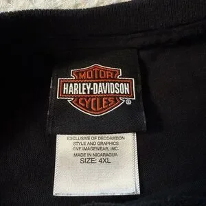 Authentic Harley-Davidson graphic t-shirt, size 4XL. Features pin-up girl motorcycle graphic on front and Australia 100 Years anniversary graphic on back. Great oversized biker, collector, or streetwear piece. Pre-owned in good condition.