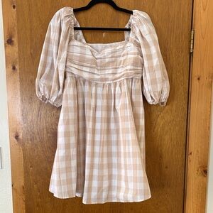 Abercrombie & Fitch Beige Checkered Mini Dress