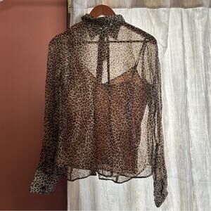 We're wild for this sheer, leopard-print shirt that comes with a built-in camisole for added coverage.