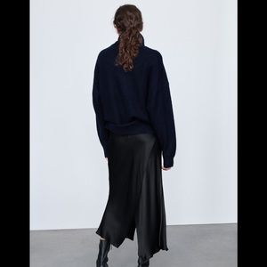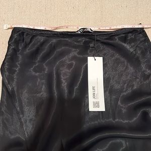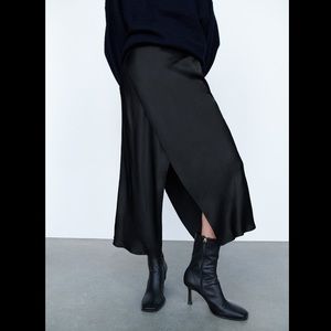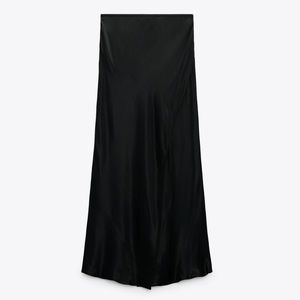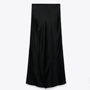 Zara Black Satin Front & Back Slit High Waisted Midi Skirt Size XS