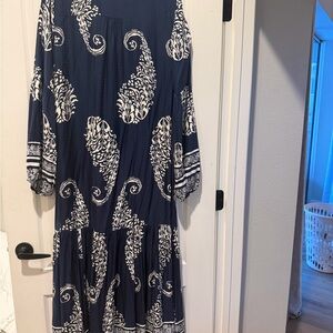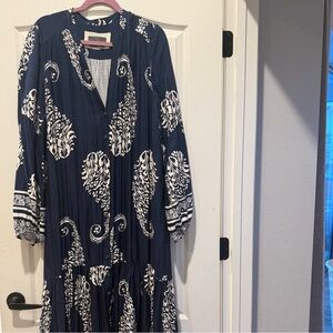 Anthropologie Navy and White Long Sleeve Dress