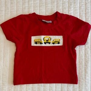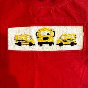 Brighten up your child's wardrobe with this vibrant red short sleeve tee featuring a fun school bus design. Perfect for everyday wear.