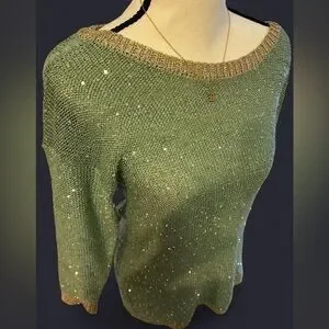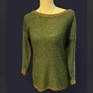 Sparkly, sequined knit sweater with gold trim