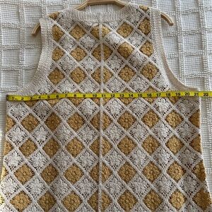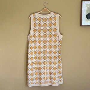 Lovely, 100% cotton crocheted shift dress by Sezane. Comes with a cream slip underneath -- 100% viscose with adjustable straps. This is such a special dress! No tags, but I never got to wear it. I'd say the sizing is generous. I'm a true 14 in dresses and this is a little too big on me. Pit-to-pit measurement is 21" flat as shown in photo. Length from top of shoulder seam to bottom hem is 36".
