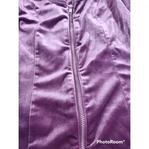 Features: Metal zipper down the front, velvet feel, scoop neck.