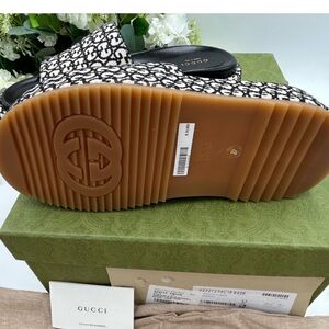 Gucci Women's Monogram Angelina slide platform sandals. Size 37