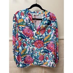 Trina Turk Tanvi Long Multi Color Balloon Sleeve Tanvi Top. Sz M. NWOT