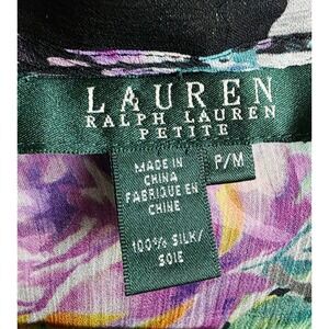 Lauren Ralph Lauren Petite M Silk Floral Print Ruffle Sleeve Tie Neck Blouse