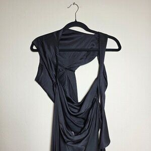Black (38% Ecovero Viscose, 62% Viscose Matte Shine). Gowns. Neckline Asymmetric. Sleeveless. Button Closure. Shoulder To Hemline Length 57". Imported.