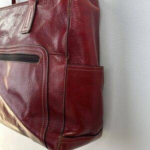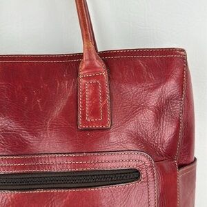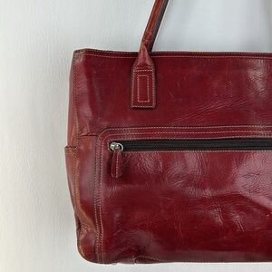 Fossil Red Leather Shoulder Tote Bag