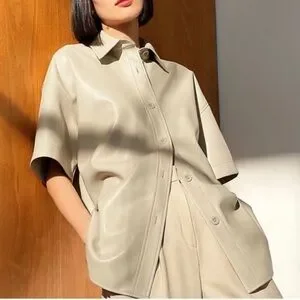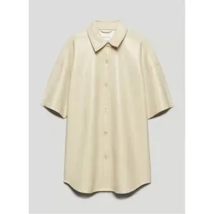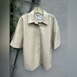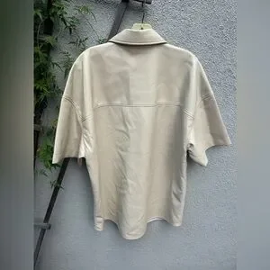 ♡ This is a short-sleeve shirt jacket with dropped shoulders and a rounded hem. It's made with our innovative Vegan Leather that looks and feels like the real thing. *